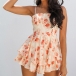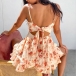Sexy Backless High Waist Ruffle Hem Sling Printed Romper