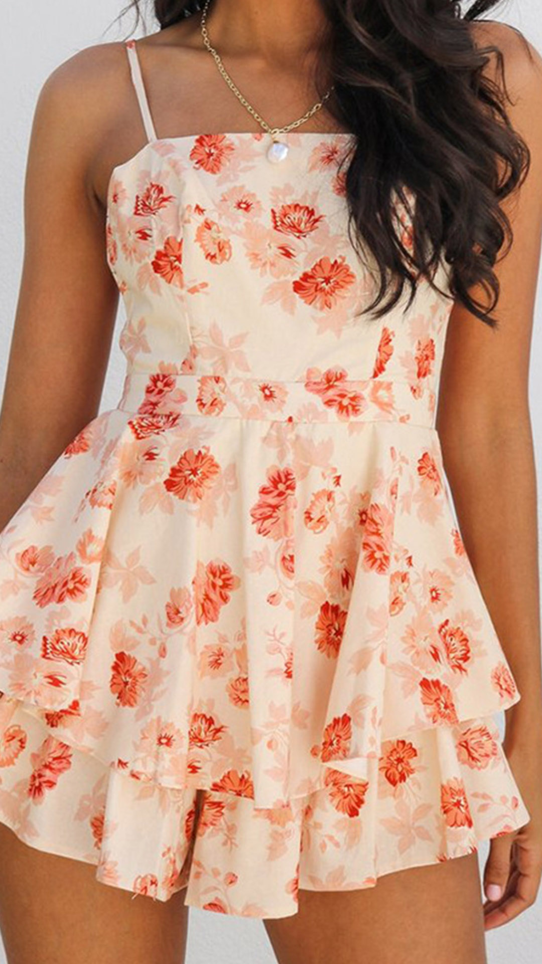 Embrace the sun-soaked summer days with this relaxed and flirty romper. Sling style,with backless and ruffle hem design,this piece definitely can make you look alluring. And the vibrant floral print details will make this piece look more beautiful and charming. From your weekend trips to beach days and tropical getaways,this piece can be a wise choice.