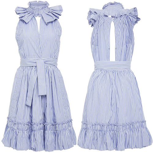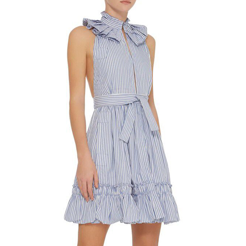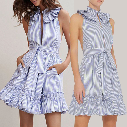 I promise you will draw more attention once you wear this dress. Striped style,accompanied with backless and ruffle