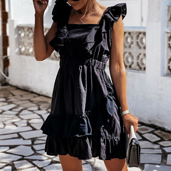 If there is one way to instantly give your image a style boost, it is by introducing this dress into your ensemble. Comes with a solid color,with the backless and ruffle design,which can lend you a dash of sexy yet sweet vibes. When it comes to a charming dating look,you can trust in this little item.