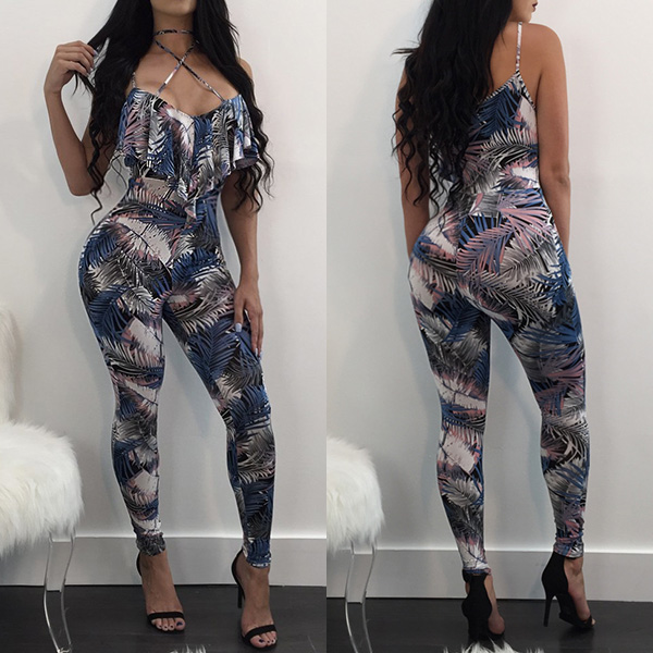 Portray your female charm and seductive curve through this jumpsuit. Sling style,designed with chic and fashionable prints,