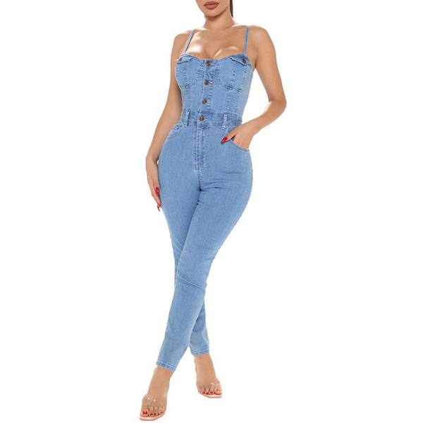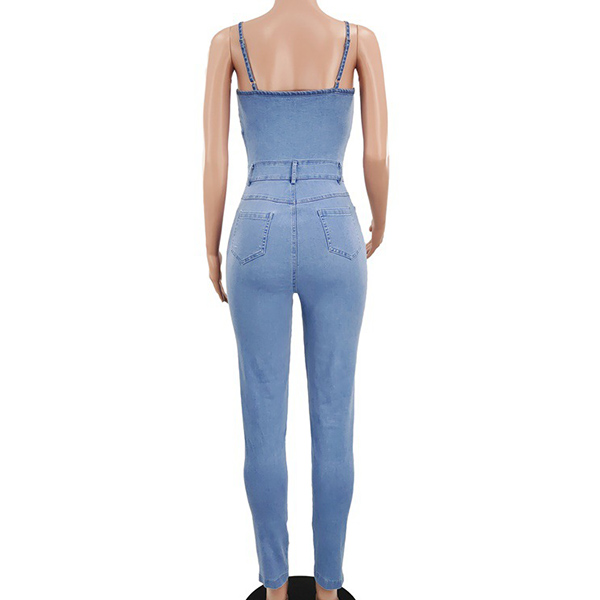 Sexy Backless High Waist Slim Fit Sling Denim Jumpsuit