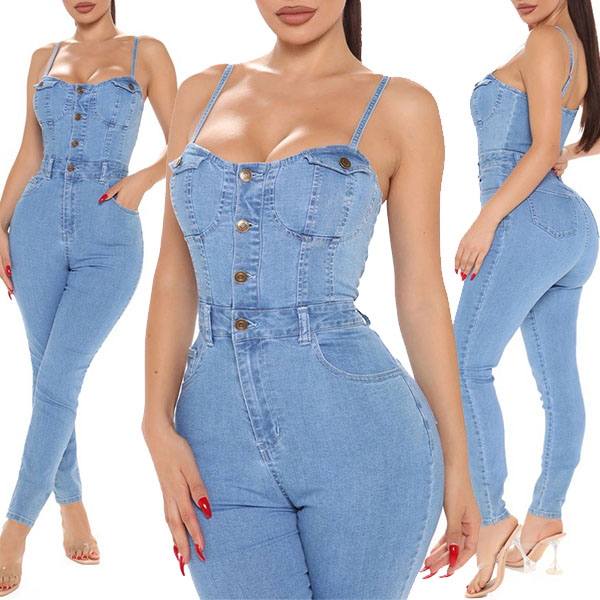 It is a good chance to flaunt off your slender figure with this denim jumpsuit. Sling style,the backless design can make you look sexy and flirty,while the high waist and fit silhouette design will portray your perfect curve. So why not slip into this to express your beauty and charm?
