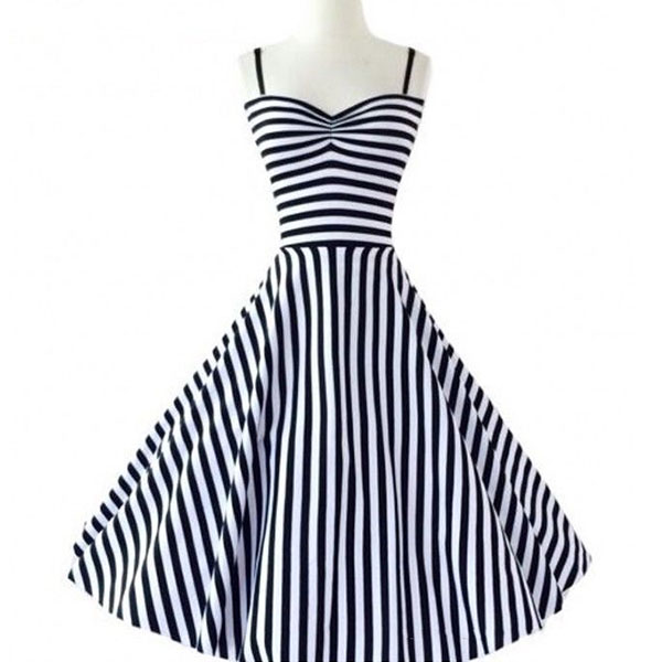 Exude the allure of an elegant lady when you slip into this striped dress. Sling style with backless design makes it look more