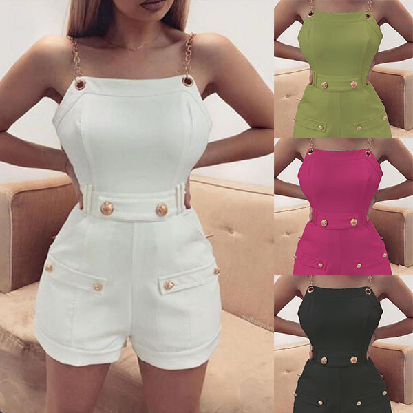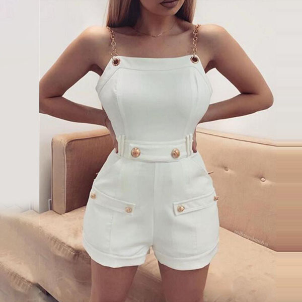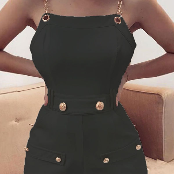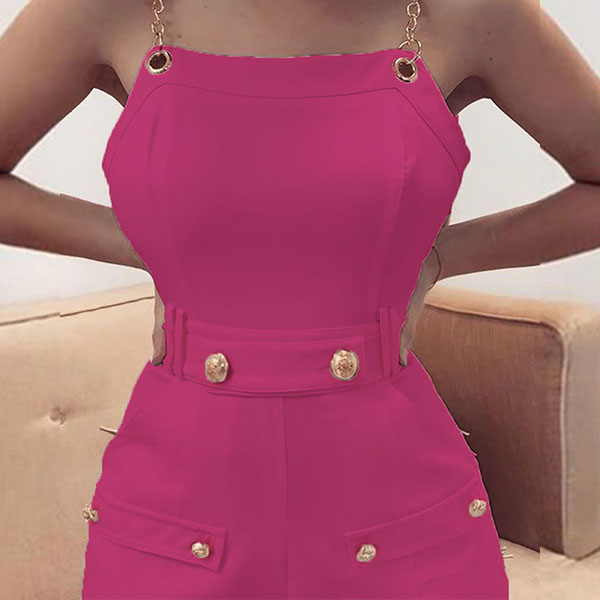 Sexy Backless High Waist Solid Color Chain Sling Romper