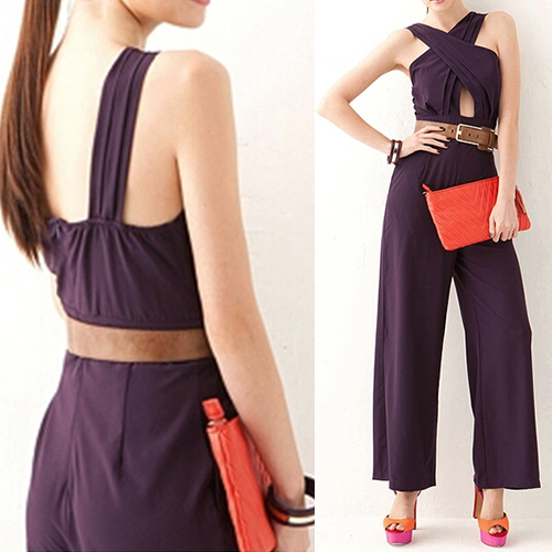 jumpsuit! Solid color style,its backless and crossover design makes this piece so flirty and sexy.