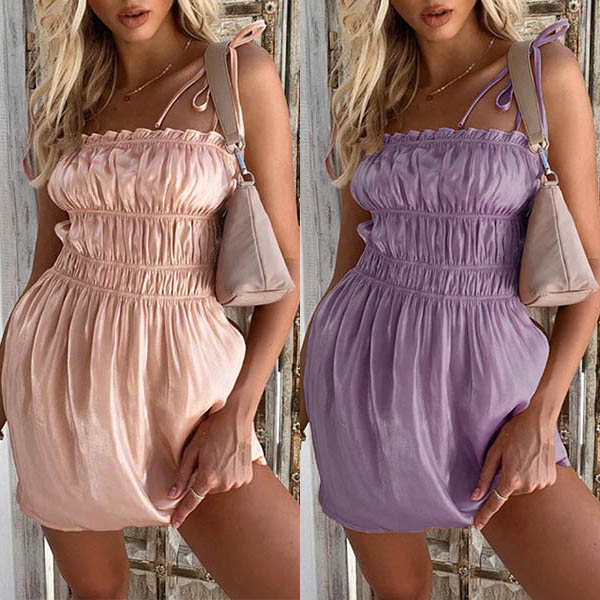 For your night events,you can trust in this dress to arouse more attention. Sling style,with backless,high waist and wrinkled details,this dress can showcase your slender figure while it exudes your charming feminine appeal. Dress it up with your sexy heels for a stunning look.