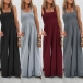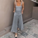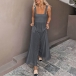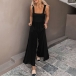 Sexy Backless High Waist Solid Color Sling Wide-leg Jumpsuit