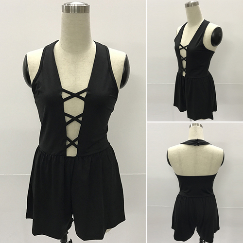 Your casual weekends are energetic and fun with this sultry halter romper! Solid color style,designed with backless and hollow out