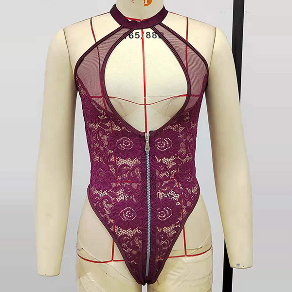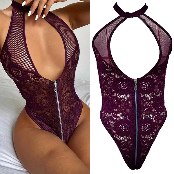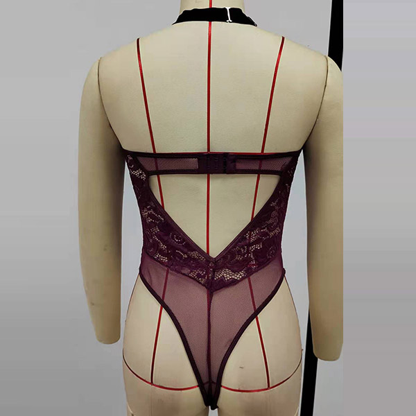 Sexy Backless Hollow Out Halter Lace Bodysuit Lingerie