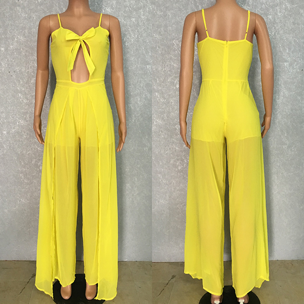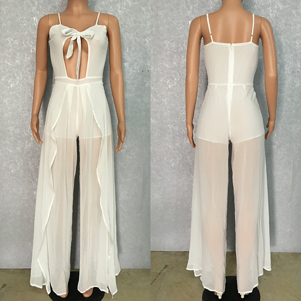 Seductive appeal comes easily once you slip into this chiffon jumpsuit! Sling style,accompanied with backless,hollow out