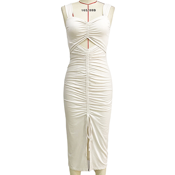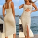 Sexy Backless Hollow Out High Waist Slit Hem Slim Fit Sling Dress