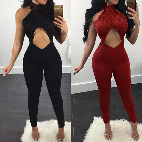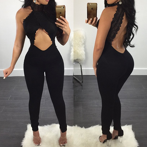 breathtaking jumpsuit. Its stunning details like backless,hollow out design at front and its lace spliced design