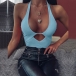 Sexy Backless Hollow Out Low-cut Solid Color Tank Top