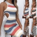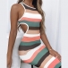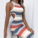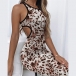 Sexy Backless Hollow Out Sleeveless Round Neck Stripe/Leopard Dress