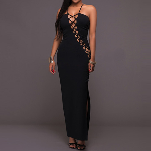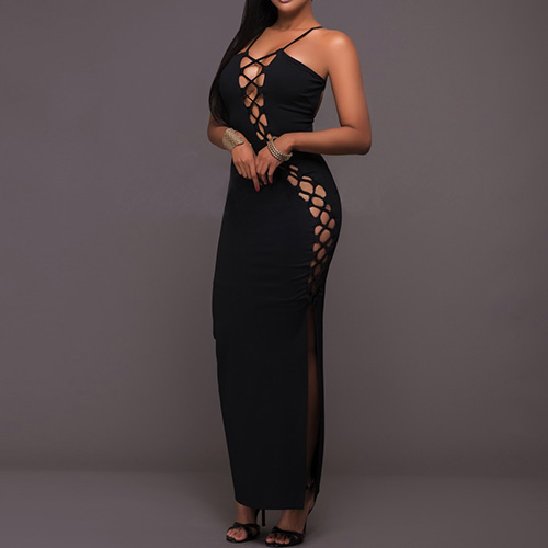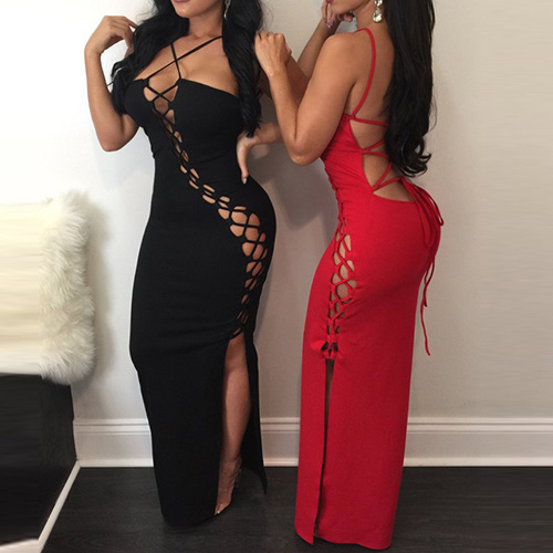 with this dress. Its backless,slit hem and hollow out details make this dress so alluring.