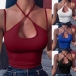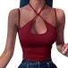 Sexy Backless Hollow Out Solid Color Halter Top