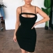 Sexy Backless Hollow Out Solid Color Slim Fit Sling Dress