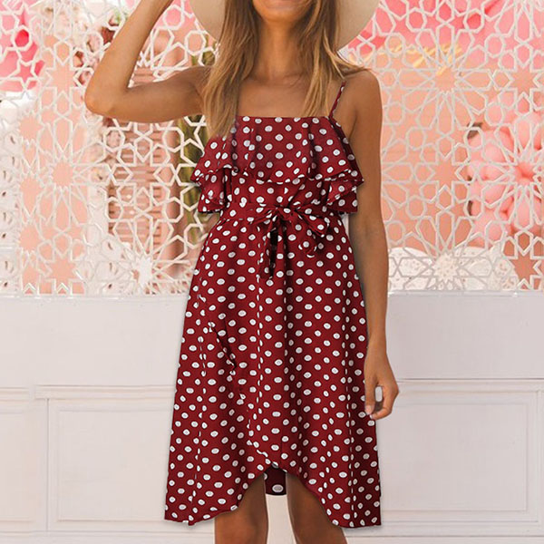 Sexy Backless Irregular Hem Dots Printed Ruffle Sling Dress