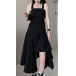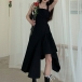 Sexy Backless Irregular Hem High Waist Solid Color Sling Dress
