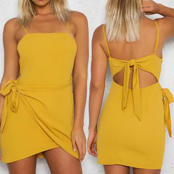When invited to a cocktail party,this simple yet sexy dress would be your good partner. Sling style,its backless,