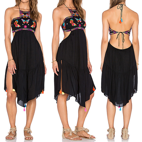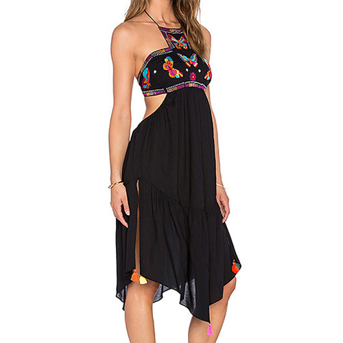 with backless and an irregular hem,sexy,chic and charming. And its butterfly printed pattern can give you a