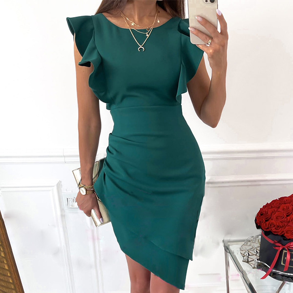 Sexy Backless Irregular Hem Ruffle Cuff Slim Fit Party Dress