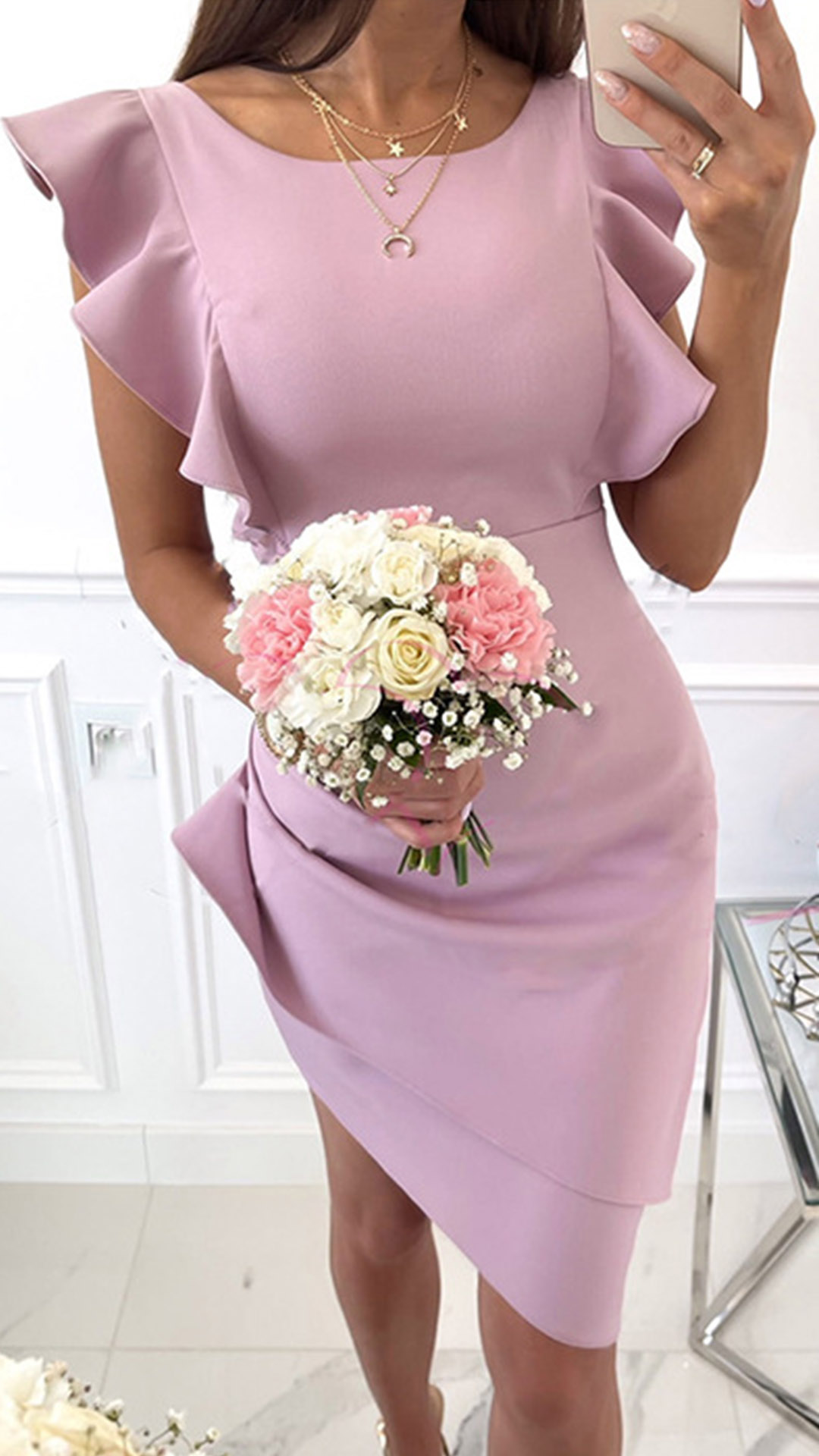 Outfitted with the features of sexy and charming and rendered into a more flattering and feminine design, this dress is the key to an effortlessly chic and sultry look. Its alluring design details like backless,irregular hem and ruffle cuff design make this piece full of sexy and flirty vibes. Dress it up with your sexy heels and elegant clutch for a stunning party look.