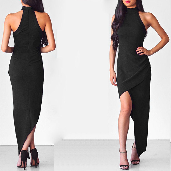 Sexy and charming,this dress is just what you need for the summer. Halter style,designed with backless and an irregular hem,