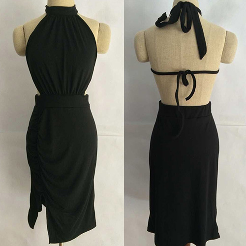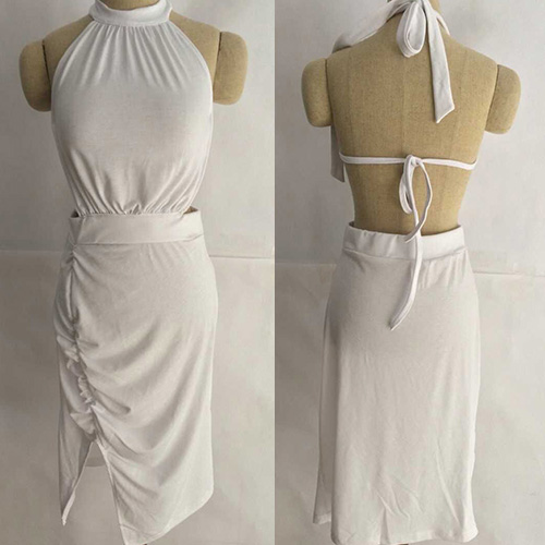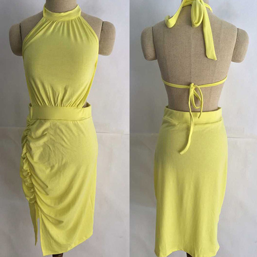 Crafted from stretch fabric,this halter dress is a perfect choice for parties and gatherings.
