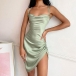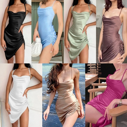 You have no wonder why all the eyes are focused on you when you don this dress. Sling and backless design make this piece look so sexy and alluring. Moreover,the irregular hem and wrinkled details will make this piece look more distinctive. When you go out with this dress,you can arouse more envious eyes.