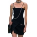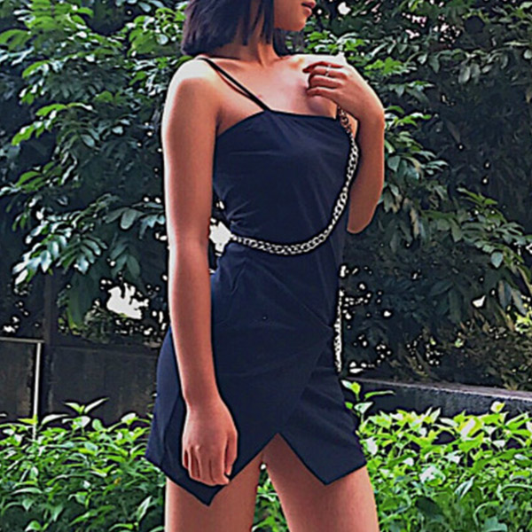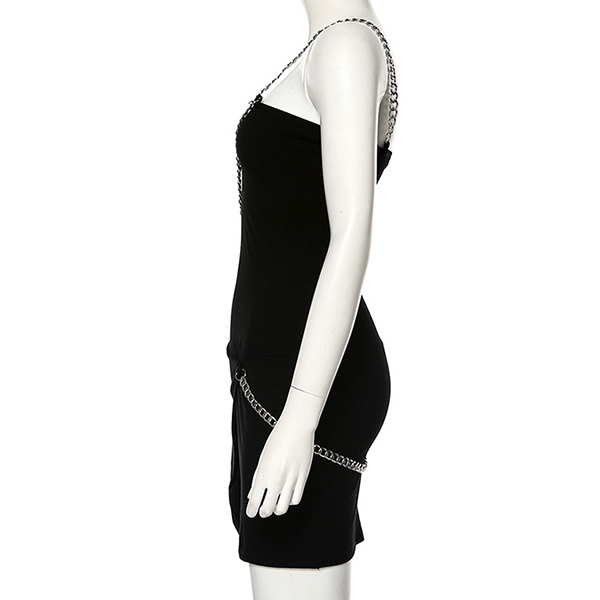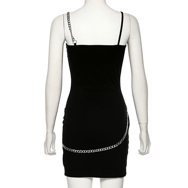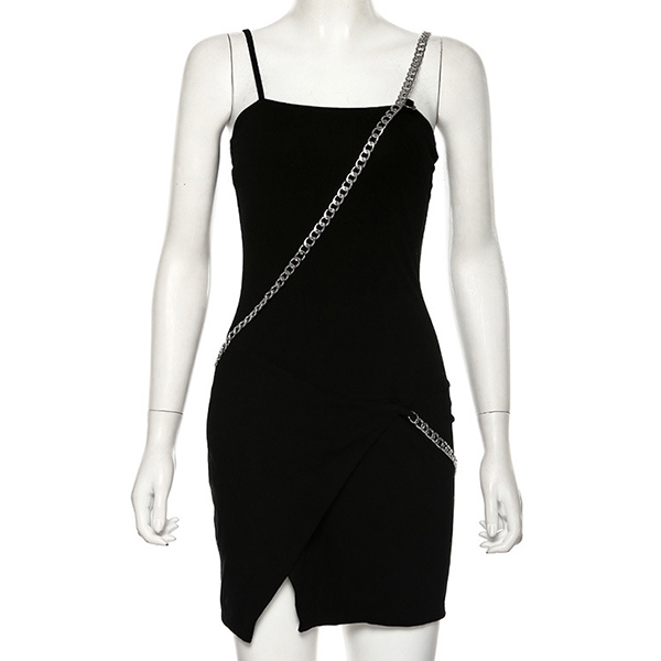 Sexy Backless Irregular Slit Hem Solid Color Slim Fit Sling Chain Dress