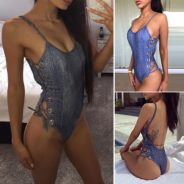 One-piece style,its backless and keyhole lace-up details on both sides make it look so alluring.
