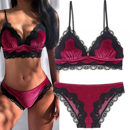 Sexy Backless Lace Spliced Bra + Briefs Underwear Set