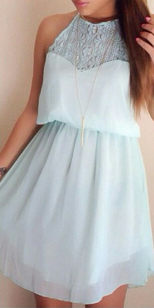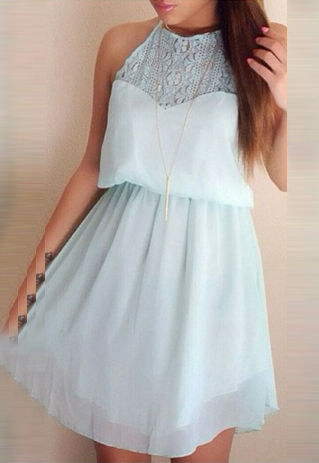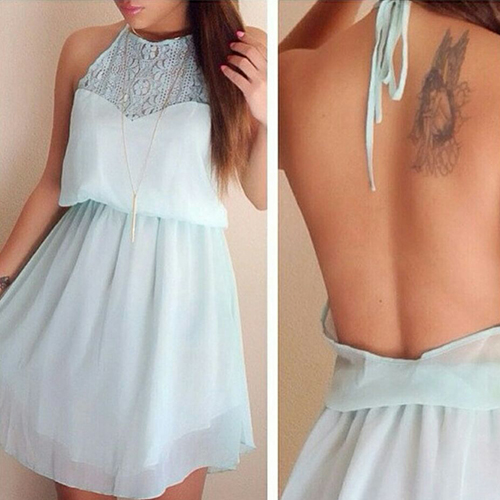 Backless style,sexy and charming. Lace spliced design makes it more feminine.