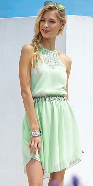 You can't become more elegant and charming than this halter dress. It is complete with many delicate details,