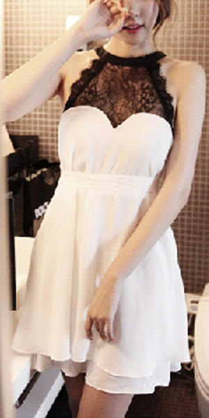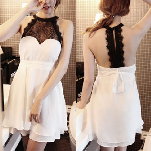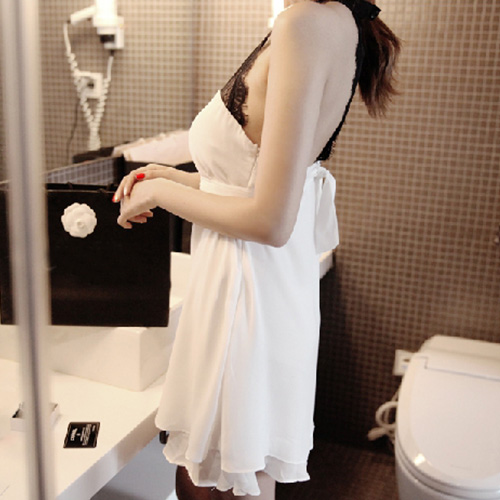 It features backless style,with lace spliced design,sexy and feminine. High waist design can