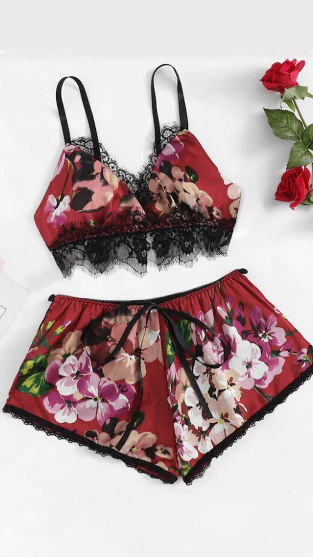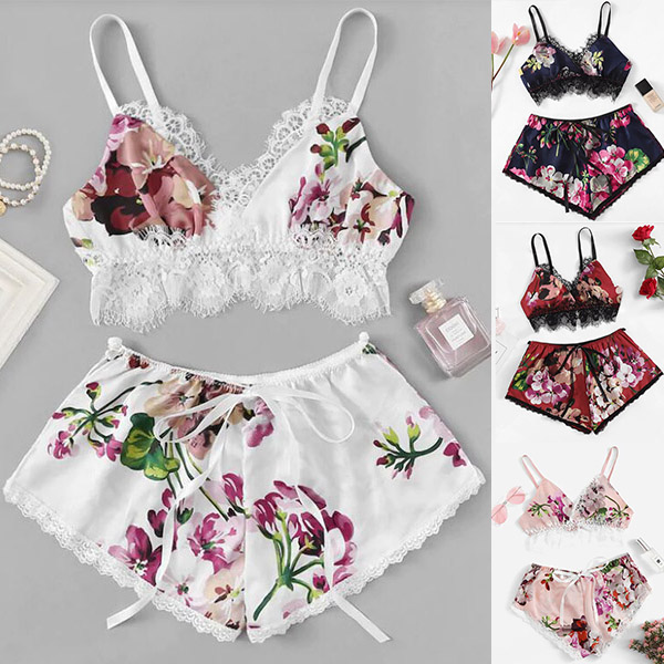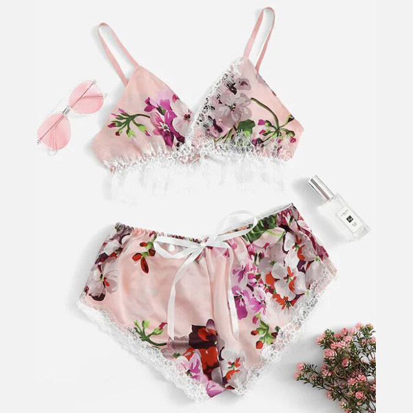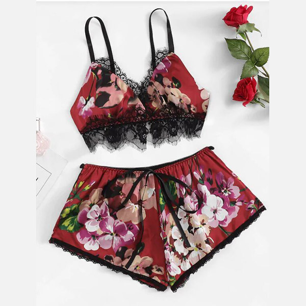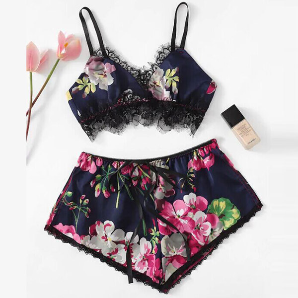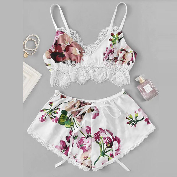 In these hot summer days,you can trust in this nightwear set to give you a good sleeping. The printed details and lace spliced design make this set look so alluring and eye-catching. Including a backless v-neck sling crop top and a shorts,crafted from soft and breathable fabric,this two-piece set can give you the cool and comfortable wearing feeling.