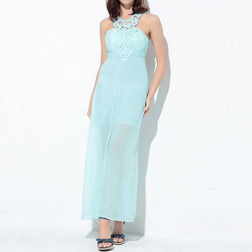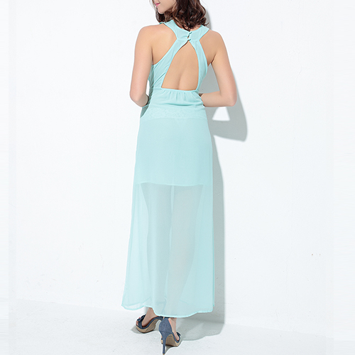 Wanna shine at your next event? Then slip into this maxi dress! Solid color style,its backless and lace spliced details