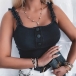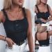 To expose your charming skin and alluring femininity,you can just have a try this wonderful top. Sling style,with backless and lace spliced details,which can help you catch more eyes. You can just match with a high waist shorts or skirt to achieve for a sassy and flirty summer look!