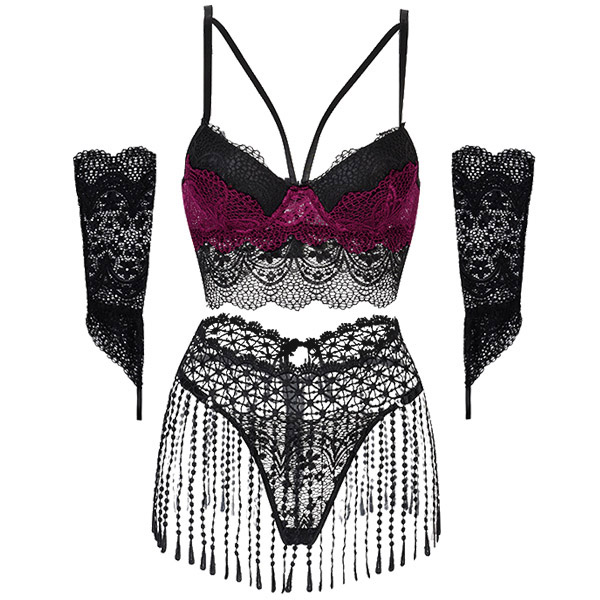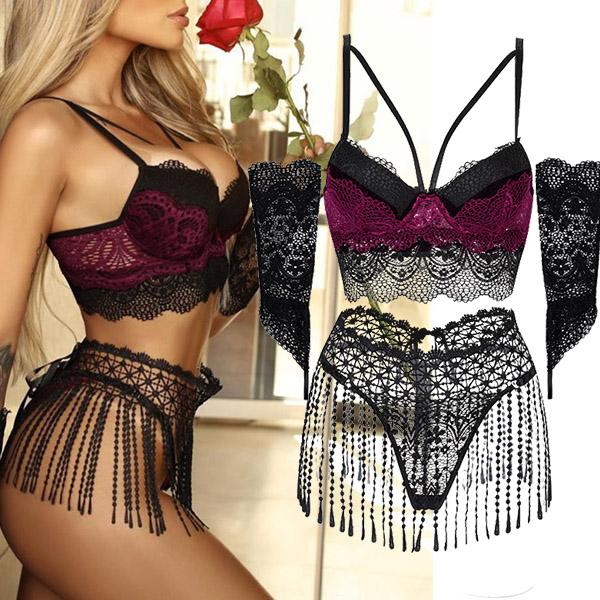 It is a good chance to inject a dash of sexy and flirty vibes to your wardrobe with the help of this lingerie set. What makes it look so sexy and alluring? it owes to the backless,lace spliced and tassel details. So why not add some different flavour to your life with these items?
