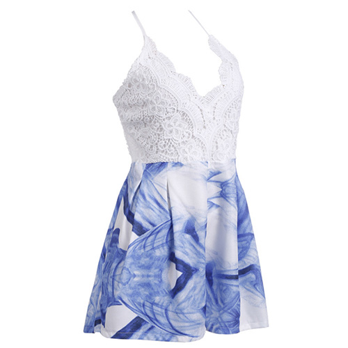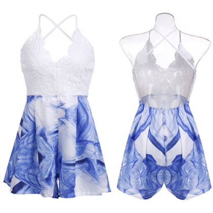 This jumpsuit features sling style,with backless and deep v-neck design,making it look