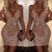 Sexy Backless Lace Spliced V-neck High Waist Slim Fit Sling Sequin Dress