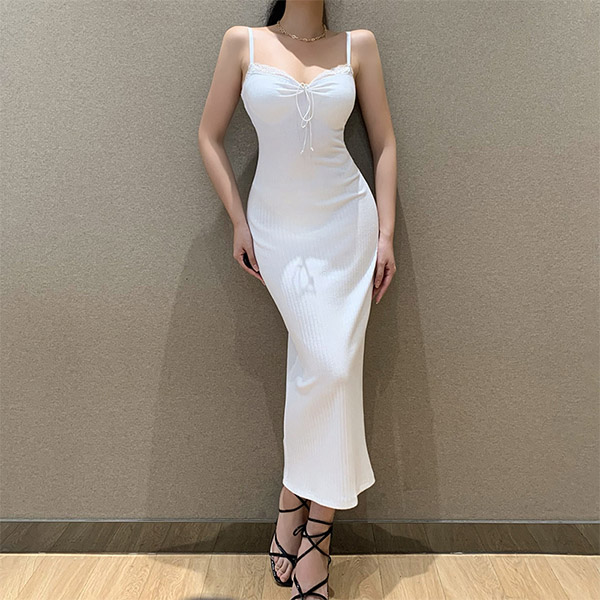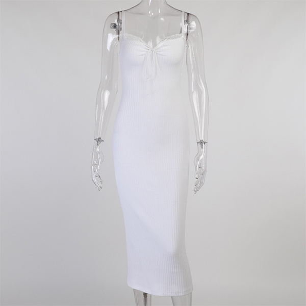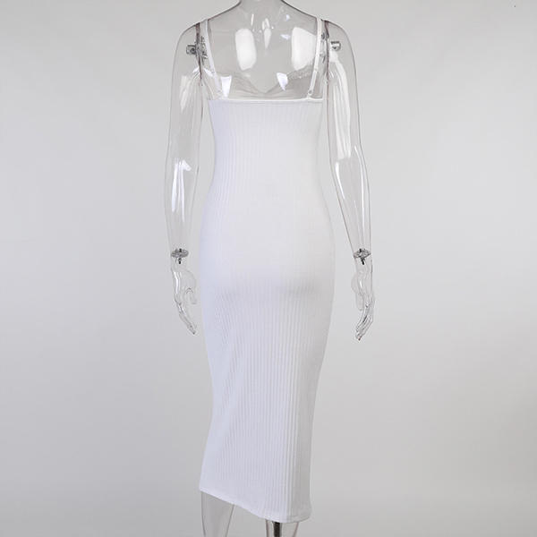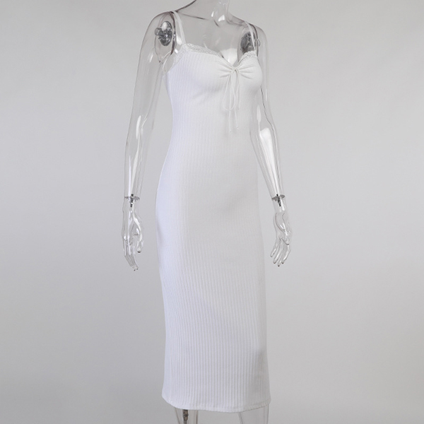Sexy Backless Lace Spliced V-neck Solid Color Slim Fit Sling Dress