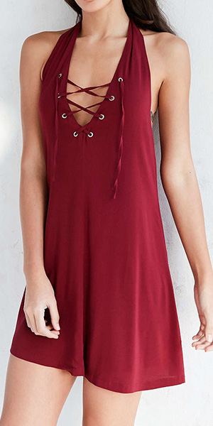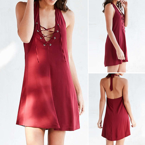 and gatherings. Its flirty details such as backless and lace-up deep v-neckline design make this piece
