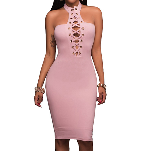 style,its lace-up details at front and body-flattering silhouette make this dress look so alluring and sexy. This