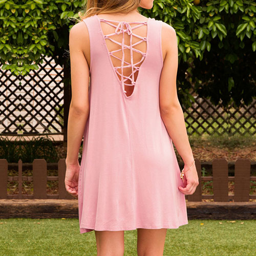 Solid color style,with sleeveless and round neck design,back-side with backless and lace-up