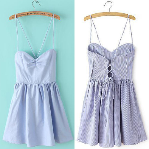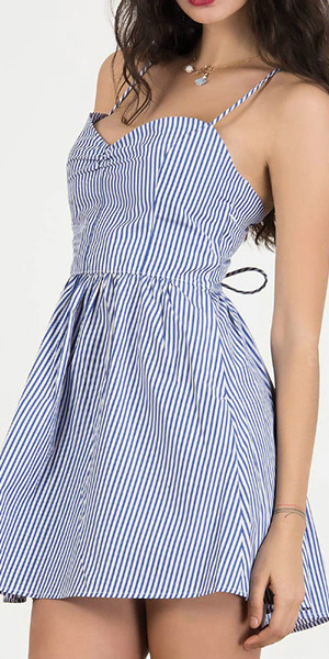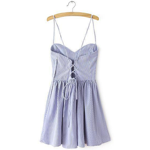 Infuse an illusion of feminine styling through this exquisite sling dress. Striped style,its backless