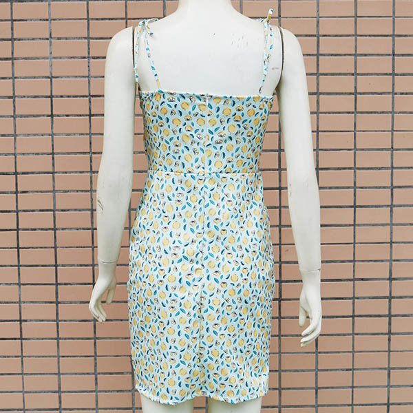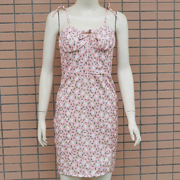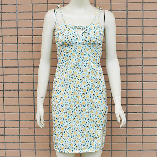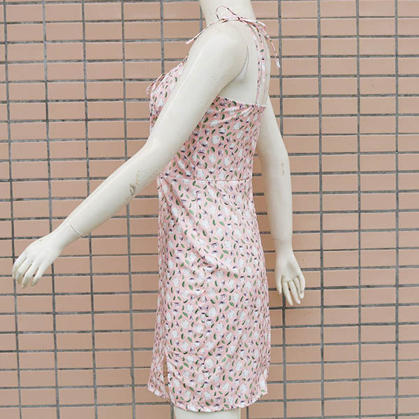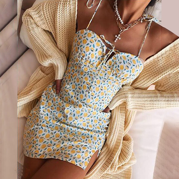 Sexy Backless Lace-up V-neck Slit Hem Slim Fit Printed Sling Dress