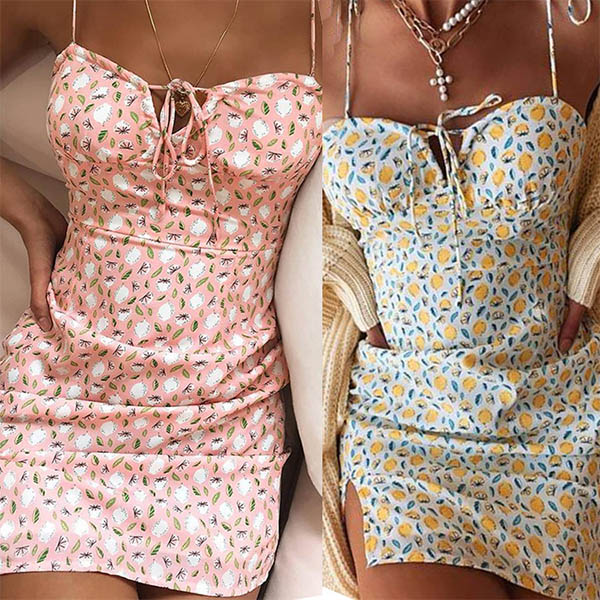 Seductive appeal can come easily once you dress yourself up with this dress. Sling style,with backless,lace-up v-neck and slit hem design,this piece can make you look sexy and flirty,while the vibrant floral print details will help you gain more eyes. So why not save this piece for your night dating?